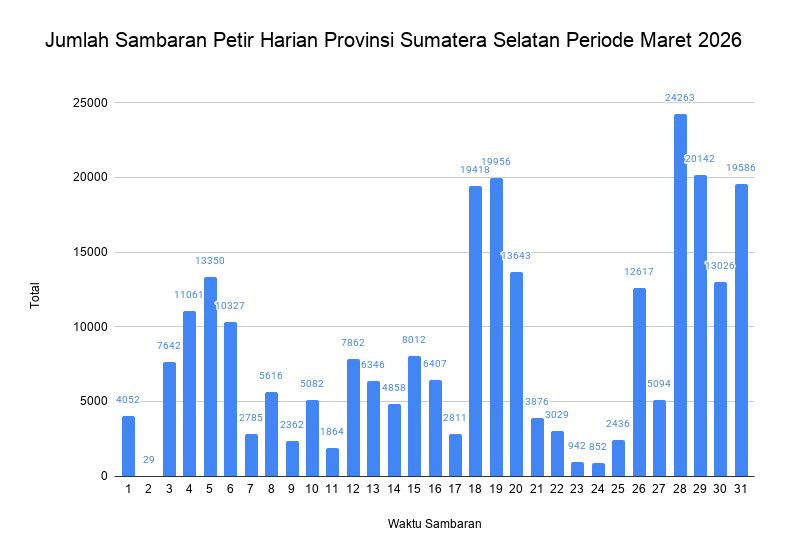 Grafik Total Sambaran Petir Harian Sumatera Selatan Bulan Maret 2026
