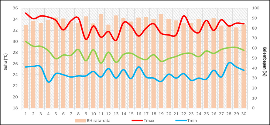 Gambar 1. Analisis Temperatur Maksimum, Minimum dan Kelembapan Rata-Rata Bulan November 2025