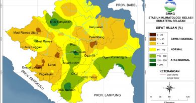 Analisis Analisis Kekeringan Analisis Tingkat Kekeringan Bulan Agustus 2024 11 September 202411 September 2024 Adriansyah Analisis tingkat kekeringan pada bulan Agustus 2024 dengan metode SPI menunjukkan bahwa sebagian besar wilayah Sumatera Selatan dalam kondisi Normal. Wilayah OKU bagian utara mengalami kondisi Agak Kering.