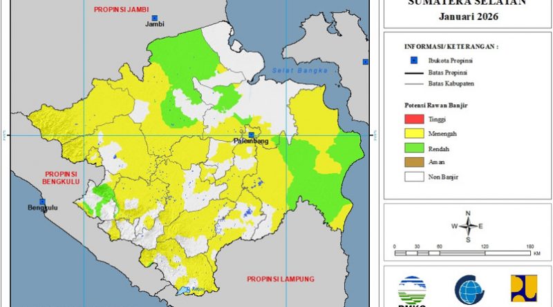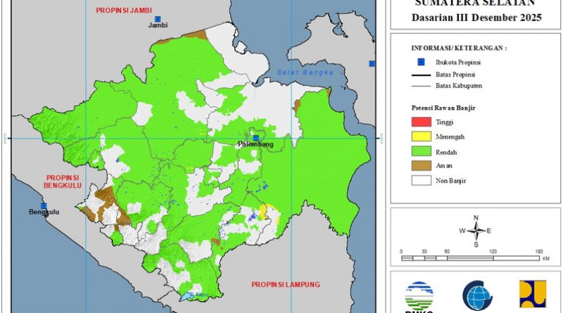 Prediksi Daerah Potensi Banjir Dasarian Provinsi Sumatera Selatan (Update 20 Desember 2025)