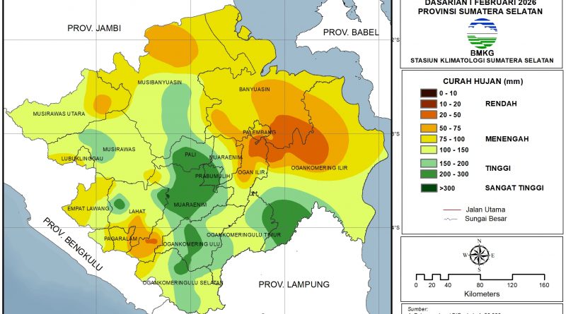 Baca SelengkapnyaDistribusi Curah Hujan Dasarian I Februari 2026Rendah (0-50 mm): sebagian kecil OKI bagian barat laut, sebagian kecil Palembang bagian selatan,