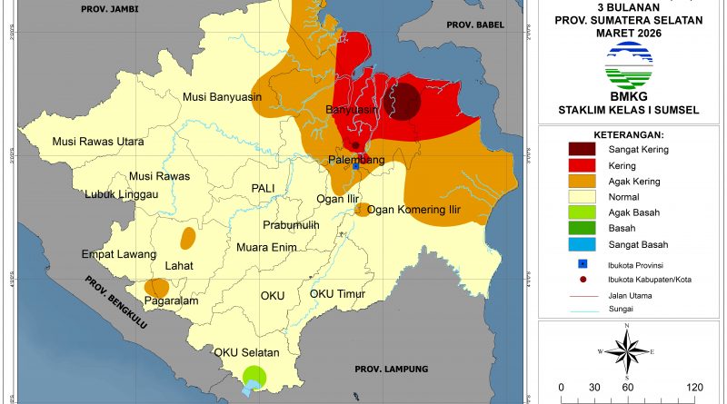 Baca SelengkapnyaAnalisis tingkat kekeringan pada bulan Maret 2026 dengan metode SPI menunjukkan bahwa sebagian besar wilayah Sumatera Selatan dalam kondisi Normal,