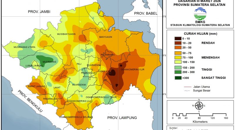 Baca SelengkapnyaDistribusi Curah Hujan Dasarian III Maret 2026Rendah (0-50 mm): wilayah Palembang, sebagian besar OKI, sebagian Banyuasin bagian tenggara, sebagian kecil