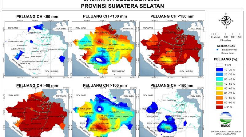 Baca SelengkapnyaPrediksi Curah Hujan Dasarian II Desember 2025Rendah (0-50 mm): Empat Lawang bagian barat.Menengah (51-150 mm): sebagian besar wilayah Sumatera Selatan.Tinggi