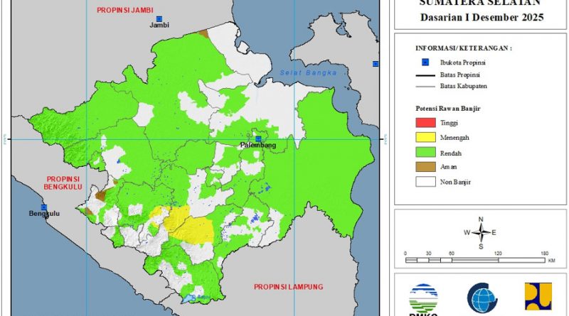 Prediksi Daerah Potensi Banjir Dasarian Provinsi Sumatera Selatan (Update 30 November 2025)