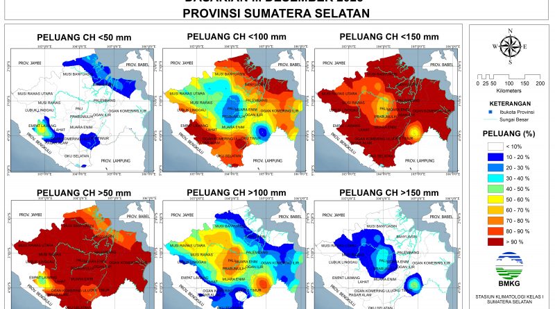 Peluang hingga 70% terjadi CH Rendah (0-50 mm): sebagian besar Empat Lawang, utara Musi Banyuasin, Banyuasin dan OKI.Peluang lebih dari