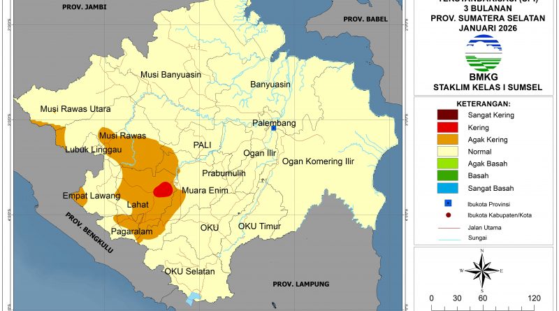 Pada bulan Januari 2026, tingkat kekeringan di sebagian besar wilayah Sumatera Selatan diprediksi berada pada kondisi Normal kecuali di sebagian besar Lahat,