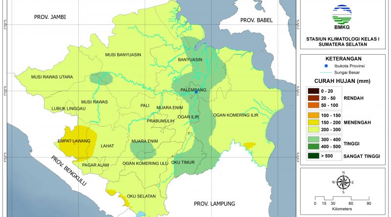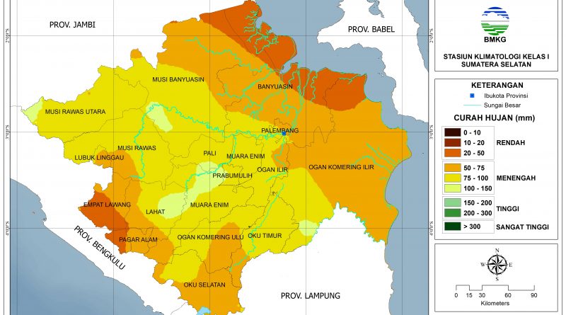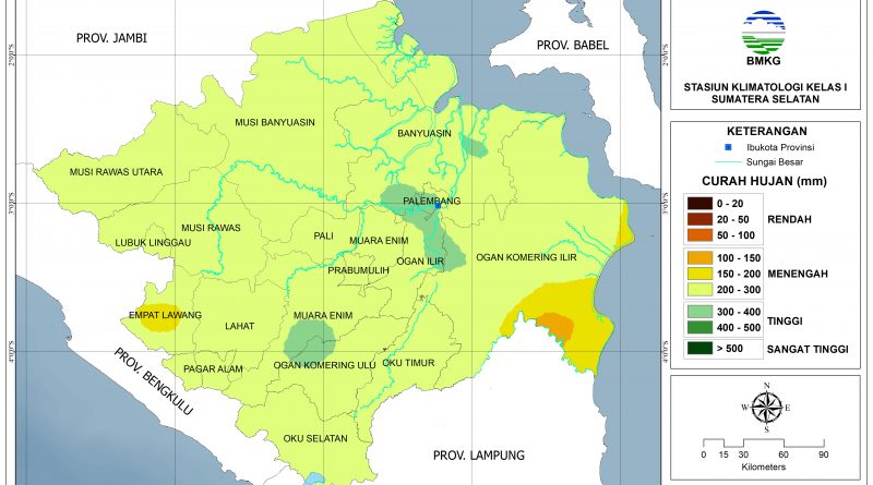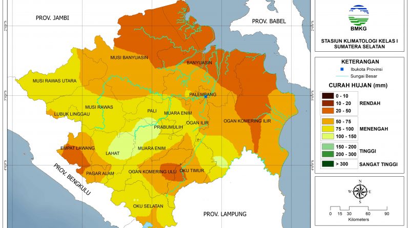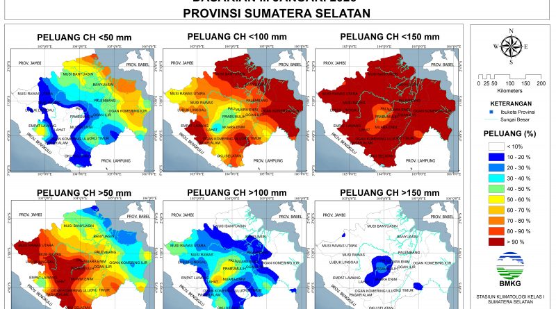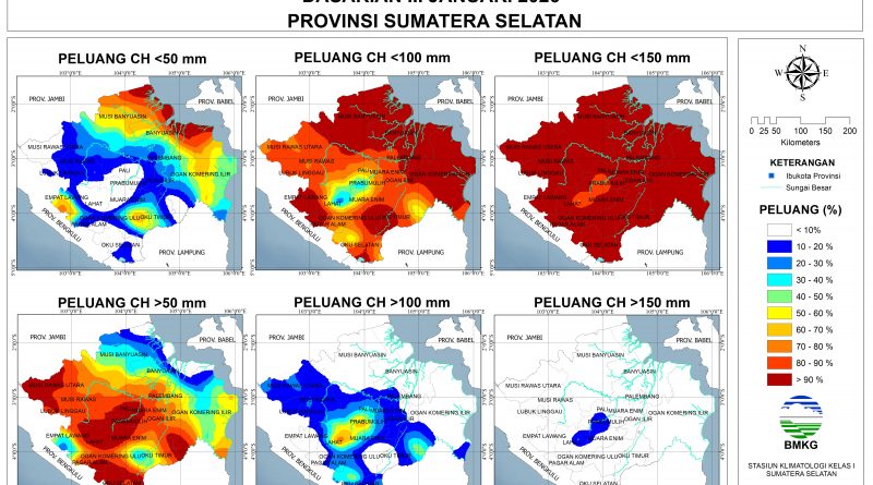 Peluang lebih dari 60% terjadi CH Rendah (0-50 mm): sebagian Musi Banyuasin bagian utara, sebagian Banyuasin bagian utara, dan sebagian