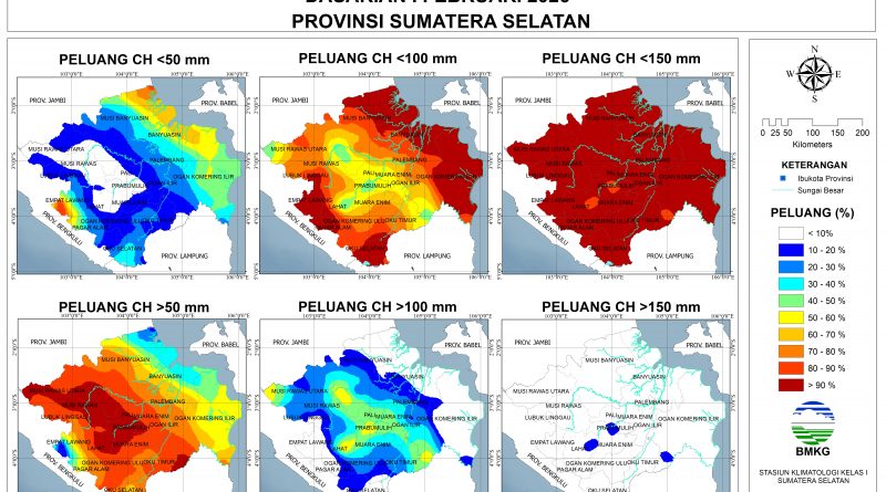 Baca SelengkapnyaPrediksi Curah Hujan Dasarian I Februari 2026Rendah (0-50 mm): sebagian Musi Banyuasin bagian utara, sebagian Banyuasin bagian utara, sebagian OKI.Menengah