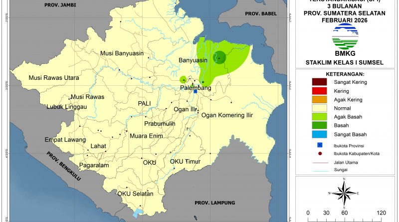Baca SelengkapnyaPada bulan Februari 2026, tingkat kekeringan di sebagian besar wilayah Sumatera Selatan diprediksi mengalami kondisi Normal kecuali di sebagian Banyuasin,
