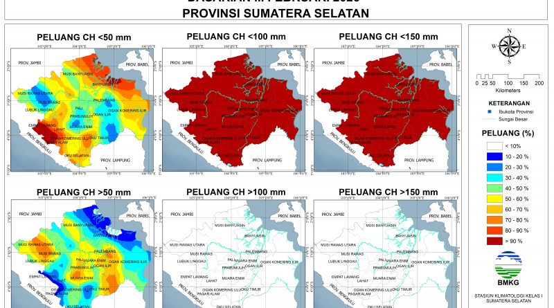Baca SelengkapnyaPrediksi Curah Hujan Dasarian II Februari 2026Rendah (0-50 mm): tidak ada.Menengah (51-150 mm): sebagian besar wilayah Sumatera Selatan.Tinggi (151-300 mm):