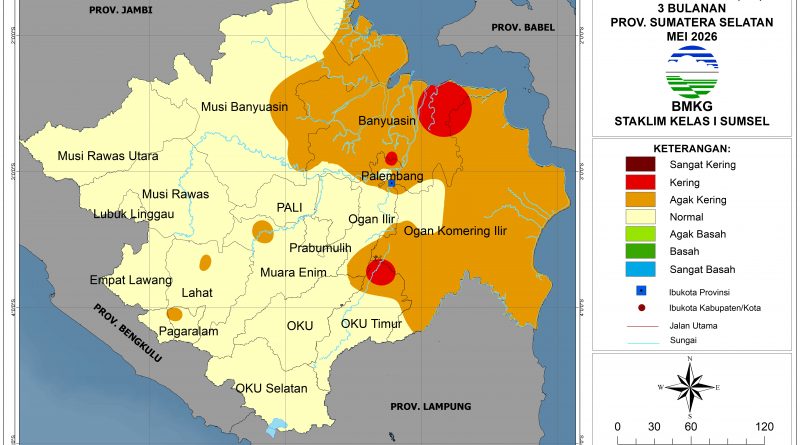 Baca SelengkapnyaPada bulan Mei 2026, tingkat kekeringan di sebagian besar wilayah Sumatera Selatan diprediksi berada pada kondisi Normal, kecuali sebagian kecil