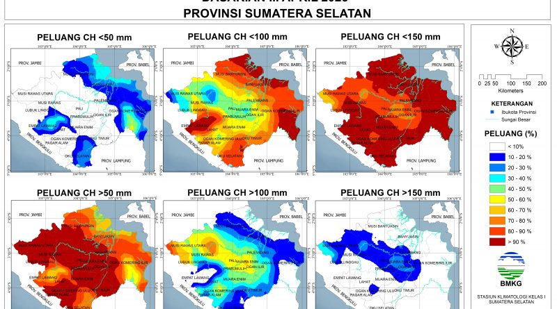 Baca SelengkapnyaPrediksi Curah Hujan Dasarian III April 2026Rendah (0-50 mm): tidak ada.Menengah (51-150 mm): Seluruh wilayah Sumatera Selatan.Tinggi (151-300 mm): tidak