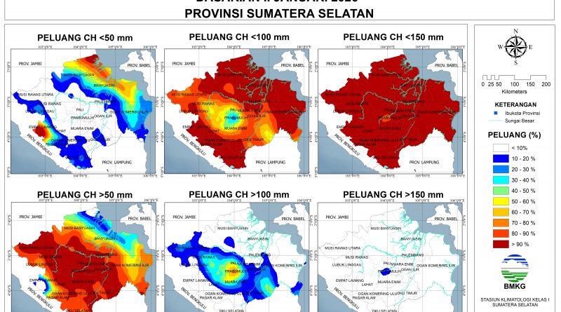 Baca SelengkapnyaPeluang hingga 70% terjadi CH Rendah (0-50 mm): sebagian besar Empat Lawang, utara Musi Banyuasin, Banyuasin dan OKI.Peluang lebih dari