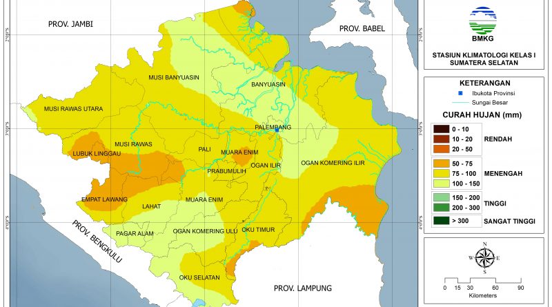 Baca SelengkapnyaRendah (0-50 mm): Sebagian besar wilayah Sumatera Selatan.Menengah (50-150 mm): Pagar Alam, sebagian besar wilayah Musi Banyuasin, sebagian besar wilayah