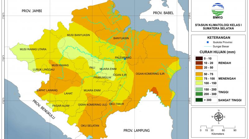 Baca SelengkapnyaPrediksi Curah Hujan Dasarian I April 2026Rendah (0-50 mm): tidak ada.Menengah (51-150 mm): sebagian besar wilayah Sumatera Selatan.Tinggi (151-300 mm):