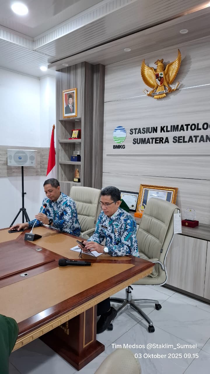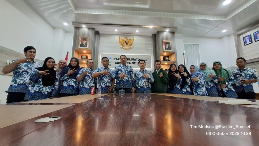 Palembang, 3 Oktober 2025 – Stasiun Klimatologi Sumatera Selatan menerima kunjungan kerja Direktur Informasi Perubahan Iklim BMKG, DR. Fachri Rajab, S.Si., M.Si., CPM pada Jumat (3/10). Kunjungan ini dilaksanakan dalam rangka meninjau Taman Alat Digital Stasiun Klimatologi Sumatera Selatan.