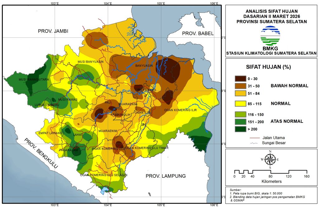 Bawah Normal:Sebagian besar wilayah Sumatera Selatan.
