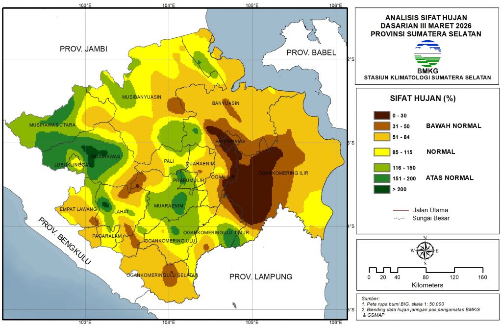 Bawah Normal: sebagian besar wilayah Sumatera Selatan.