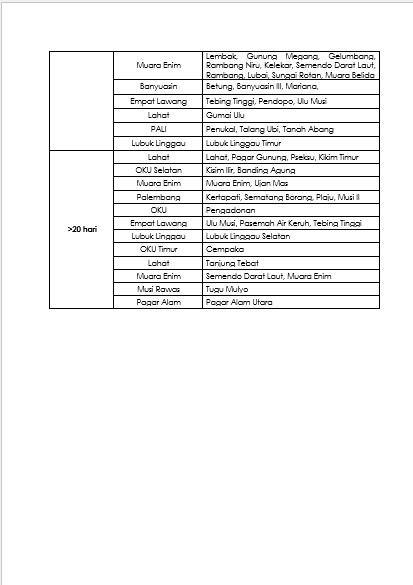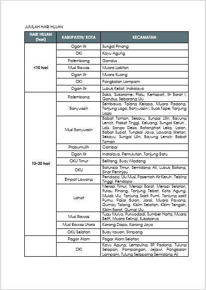 Analisis Informasi Hari Hujan Informasi Jumlah Hari Hujan Bulan Februari Tahun 2026 6 Maret 2026 siska masrury Analisis Hujan, Informasi Hari Hujan Informasi Jumlah Hari Hujan Bulan Februari Tahun 2026 berdasarkan data curah hujan yang diterima dari stasiun/pos hujan kerjasama di wilayah Provinsi Sumatera Selatan disajikan pada tabel berikut: