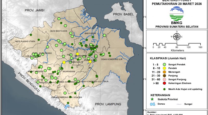 Baca SelengkapnyaMonitoring Hari Tanpa Hujan (update 20 Maret 2026) Sebagian besar wilayah Sumatera Selatan masih terjadi hujan sampai dengan pemutakhiran data.Sangat