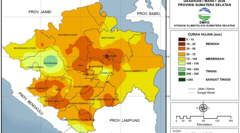 INFORMASI IKLIM DASARIAN PROVINSI SUMATERA SELATAN UPDATE 10 MARET 2026SEBAGIAN BESAR WILAYAH SUMATERA SELATAN DIPREDIKSI MENGALAMI CURAH HUJAN KATEGORI MENENGAH PADA DASARIAN II MARET 2026, MESKI CURAH HUJAN MENGALAMI PENURUNAN TETAP WASPADA TERHADAP POTENSI KEJADIAN EKSTREM DAN BENCANA HIDROMETEOROLOGI