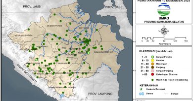 HTH terpanjang terukur di Pos Hujan Bayung Lencir, Kecamatan Bayung Lencir, Kabupaten Musi Banyuasin selama 4 (empat) hari.