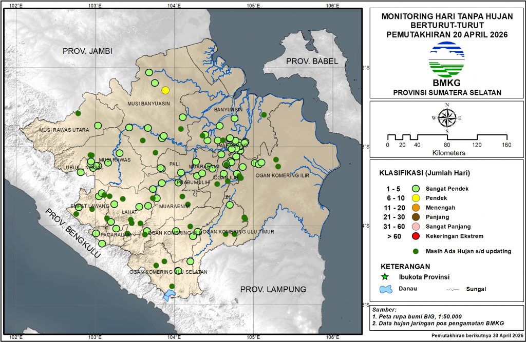 Monitoring Hari Tanpa Hujan (update 20 April 2026)