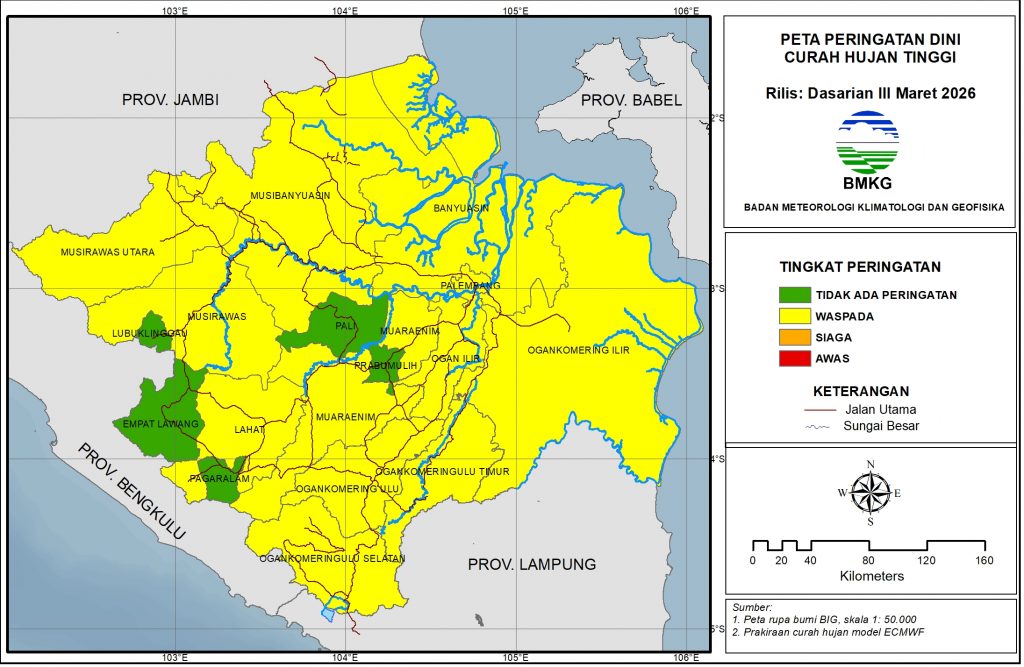Peringatan Dini Curah Hujan Tinggi dan Kekeringan Meteorologis Dasarian I April 2026 (Update 31 Maret 2026)