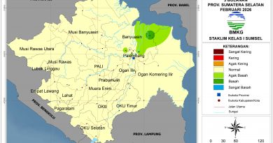 INFORMASI IKLIM DASARIAN PROVINSI SUMATERA SELATAN UPDATE 10 JANUARI 2026: SEBAGIAN BESAR WILAYAH SUMATERA SELATAN DIPREDIKSI MENGALAMI CURAH HUJAN KATEGORI MENENGAH PADA DASARIAN II JANUARI 2026, TETAP WASPADA TERHADAP POTENSI KEJADIAN EKSTREM DAN BENCANA HIDROMETEOROLOGI