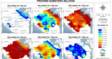 Sebagian besar wilayah Sumatera Selatan berpeluang hingga 90% terjadi CH Menengah antara 50-150 mm. Sebagian kecil wilayah Musi Rawas, Musi Rawas Utara, Musi Banyuasin, Lahat bagian timur, Muara Enim bagian tengah dan OKU bagian utara, berpeluang lebih dari 40% terjadi CH Tinggi >150 mm, sementara sebagian besar wilayah Empat Lawang, sebagian kecil Lahat, Banyuasin dan Musi Banyuasin, berpeluang lebih dari 40% terjadi CH Rendah <50 mm.