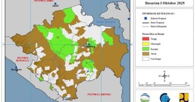 Peluang lebih dari 60% terjadi CH Menengah (50-150 mm): seluruh wilayah Sumatera Selatan.