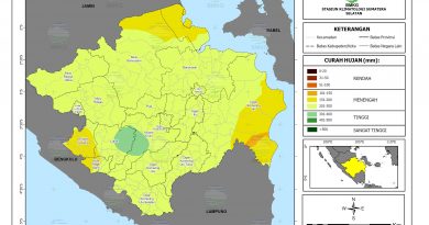 Peluang hingga 60% terjadi CH Menengah (50-150 mm): Sebagian kecil wilayah Musi Banyuasin dan Musi Rawas Utara.