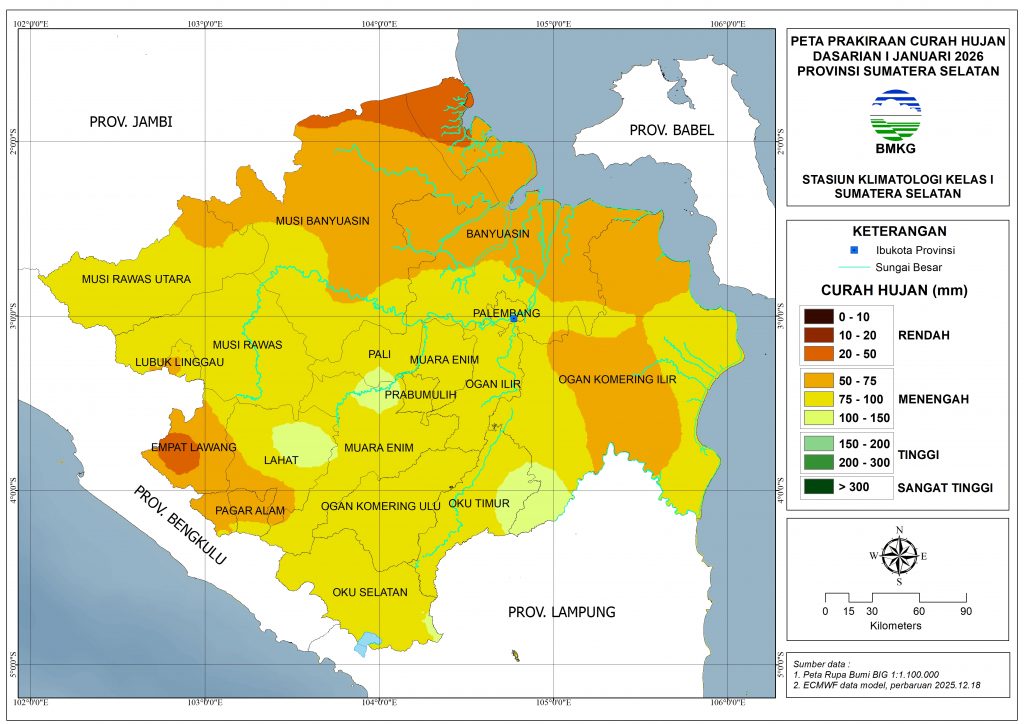 Rilis Prediksi Puncak Musim Hujan Tahun 2025/2026 Provinsi Sumatera Selatan