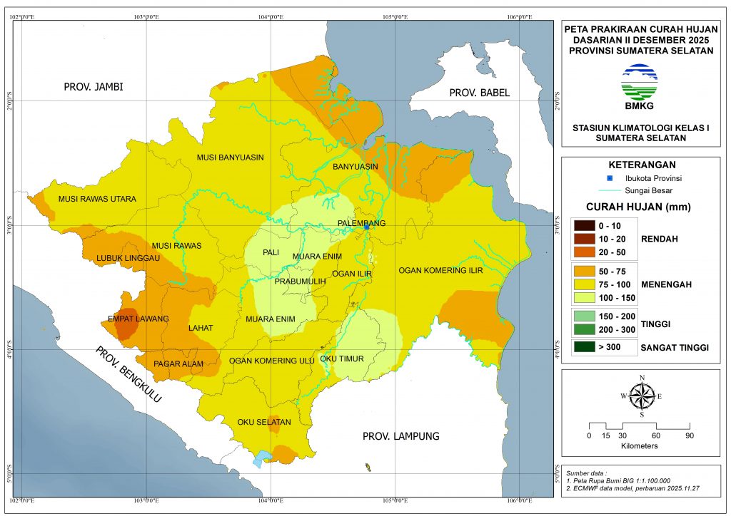 Rilis Prediksi Puncak Musim Hujan Tahun 2025/2026 Provinsi Sumatera Selatan