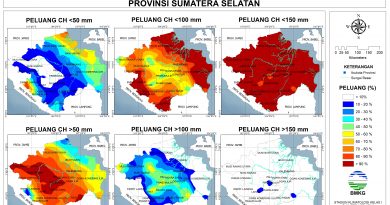 - INFORMASI IKLIM DASARIAN PROVINSI SUMATERA SELATAN UPDATE 20 NOVEMBER 2024; SELURUH WILAYAH SUMATERA SELATAN TELAH MEMASUKI PERIODE MUSIM HUJAN, CURAH HUJAN DIPREDIKSI AKAN TETAP TINGGI PADA DASARIAN III NOVEMBER 2024, TETAP WASPADA AKAN KEJADIAN EKSTREM DAN BENCANA HIDROMETEOROLOGIS YANG DAPAT TERJADI