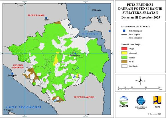 - Prakiraan Daerah Potensi Banjir Provinsi Sumatera Selatan Dasarian III Desember 2025