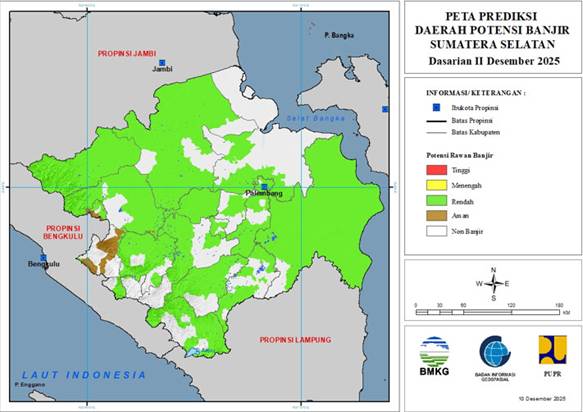 - Prakiraan Daerah Potensi Banjir Provinsi Sumatera Selatan Dasarian II Desember 2025
