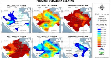 Prediksi Daerah Potensi Banjir Provinsi Sumatera Selatan Periode Juli, Agustus, dan September 2025 (Update 10 Juni 2025)