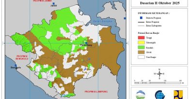Seluruh wilayah Sumatera Selatan diprediksi mengalami sifat hujan Atas Normal pada Agustus 2025.