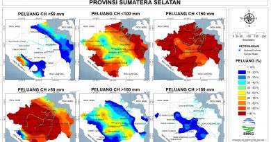 Pada bulan Mei sebagian besar wilayah Sumatera Selatan diprediksi mengalami sifat hujan Normal pada Mei 2025, kecuali sebagian kecil Musi Rawas, Musi Banyuasin, Banyuasin, diprediksi mengalami sifat hujan Bawah Normal.
