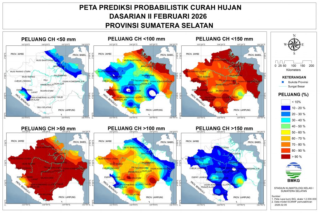 Prediksi Probabilistik Curah Hujan Dasarian II Februari 2026 (update 10 Februari 2026)