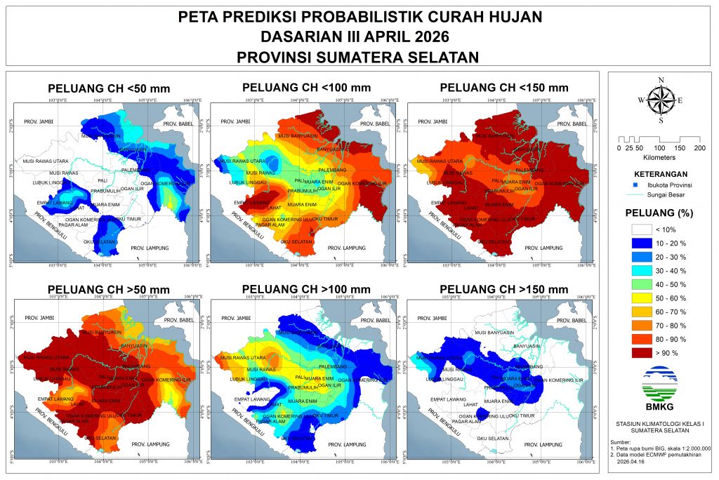 Prediksi Probabilistik Curah Hujan Dasarian III April 2026 (update 20 April 2026)